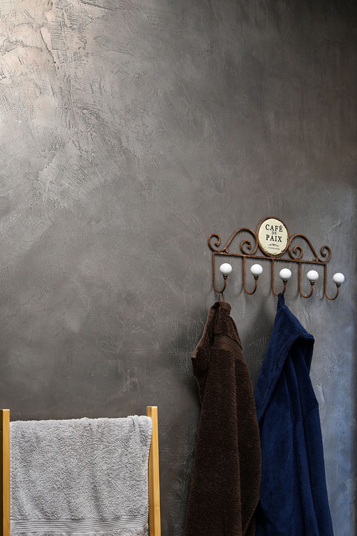 Tynk Metal Line TG to pokrycie dekoracyjne imitujące metal, blachę. To cienkowarstwowy tynk polimerowy zawierający stopy stali przeznaczony do wykonywania trwałych dekoracji wewnątrz pomieszczeń, o fakturze wynikającej z rodzaju użytego narzędzia i techniki aplikacyjnej. Może być stosowany do wyprawy ścian, sufitów oraz podłóg w pomieszczeniach mieszkalnych, a także w obiektach użyteczności publicznej. To nowoczesny wykończeniowy materiał budowlany, trwały, odporny i gwarantujący uzyskanie unikalnej dekoracji wnętrz.
